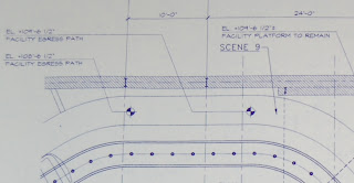 Some other helpful bits of info in these prints include the vehicle dimensions and track width. In a few cases, the prints also tell me the height of some of the set platforms from the original ride that were reused. The rest of these can be figured out from the egress path as well.